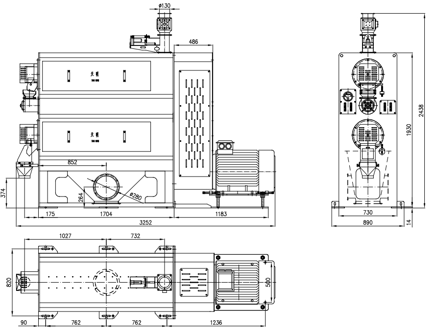 侧拉电机设计,安装、拆卸主机电机和更换传动皮带方便快捷,提高工作效率。