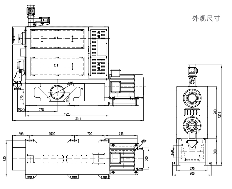 采用上下分体式机身结构,加强型钢板机身增加设备抗扭强度在运转 时振动小、稳定性高,延长设备使用寿命,同时增加机器外观设计美感。